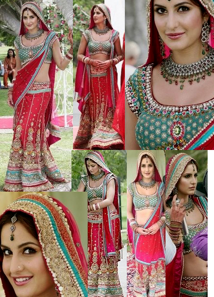 Katrina looks really hot and a true Indian bride in this beautiful lehnga. Minimal jewelry complements her look very well.