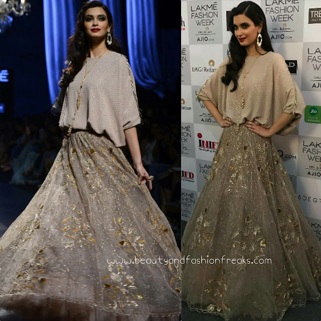 Diana walked the ramp for Payal Singhal at the recently held Lakme Fashion Week 2017. The outfit is gorgeous and the styling and make-up is spot on, loved the look head to toe!