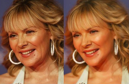 Alicia Silverstone seems much younger in the picture after using photoshop. Many of the dark patches on her face are reduced.