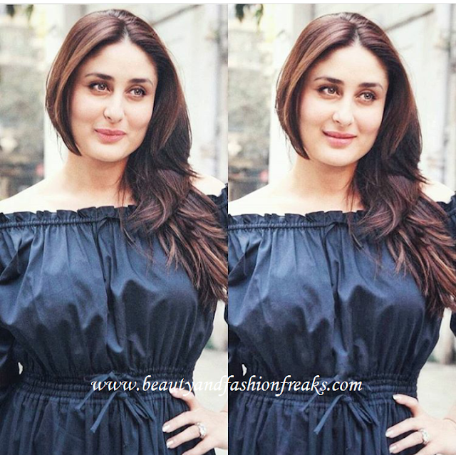 A latest chat session on facebook with celebrity nutritionist Rujuta Diwekar saw Kareena sporting an off-shoulder Ankita Choksey blue maxi. With her hair down, she rounded out her look with a pair of black ankle-strap sandals and minimal make-up. A simple yet so chic look! The color looked rich against her skin tone and the actor looked gorgeous!