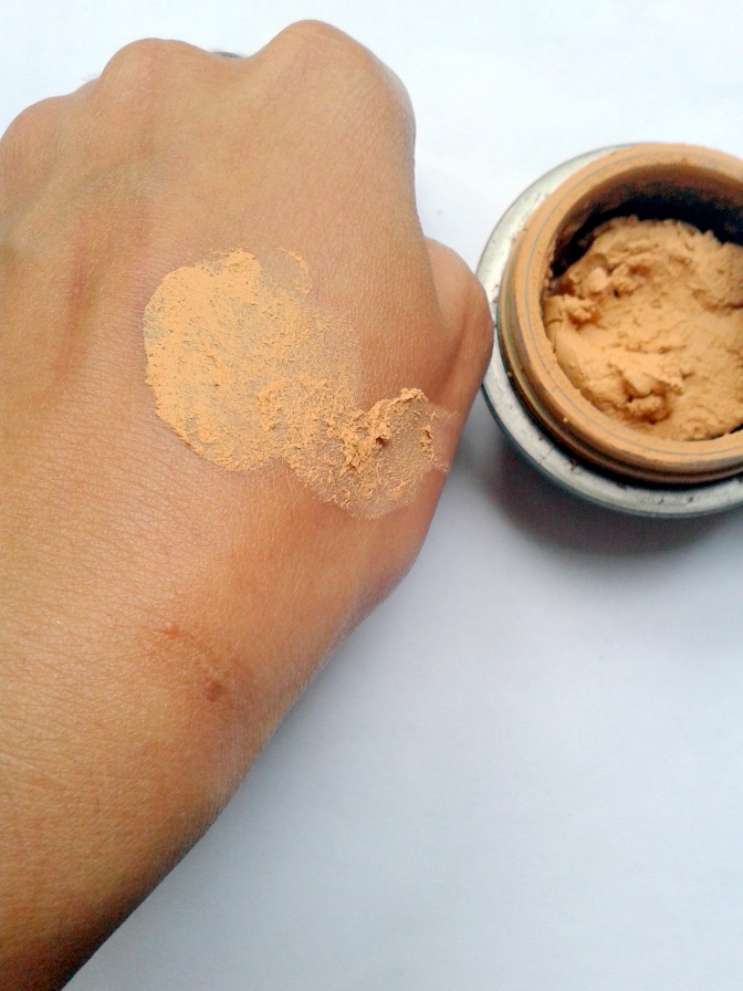 When I saw it at a cosmetic shop, it was like a “love at first sight” to me. Its packaging is just adorable. It comes in a very classy looking ball like pot as you can see in the image. There is a steel silver coloured lower compartment which holds the foundation and a glass silver screw lid on the top. But its packaging is unhygienic too as it gets messy on the edges of pot. Also it is heavy too and being delicate it is not travel friendly.