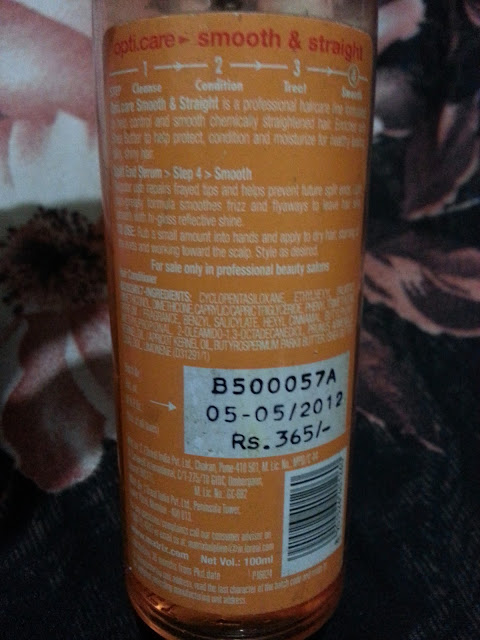 Hey girls! Today I am going to review “Matrix Opti.Care Smooth Straight Split End Serum”. Honestly speaking when I purchased this product I didn’t realised or better to say I didn’t noticed that it is meant for chemically straightened hair, I realised this after almost 1-2 monthsJ. But never mind this product was worth trying so all I can say that my mistake was a blessing in disguise (as I believe whatever happens, happens for the best)J.