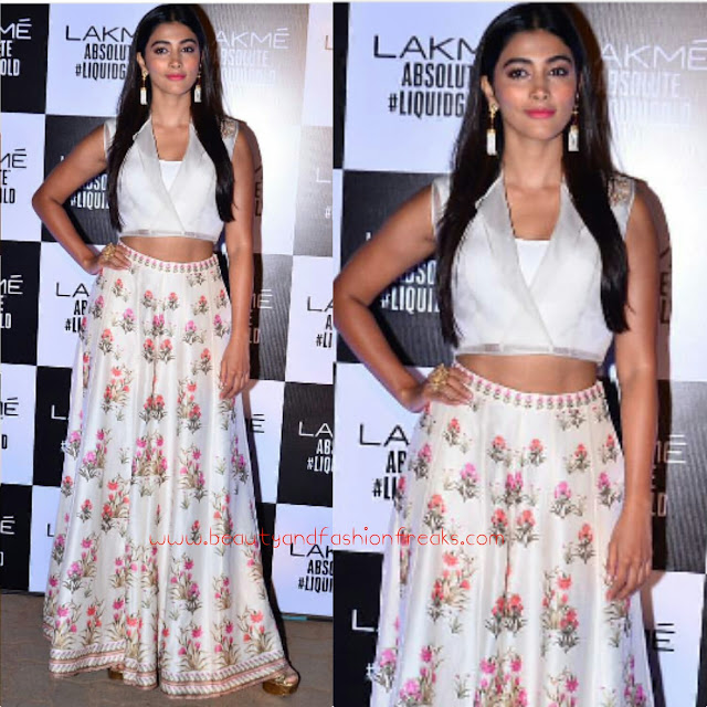 Pooja supported Anita Dongre by taking in the designer’s show wearing the separates by the designer at the recently held Lakme Fashion Week 2017. The actor completed her look with middle parted sleek hair, matching dangler earrings and pink lips. There is nothing unique or new about the separates though Ms. Hegde looked nice!