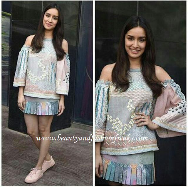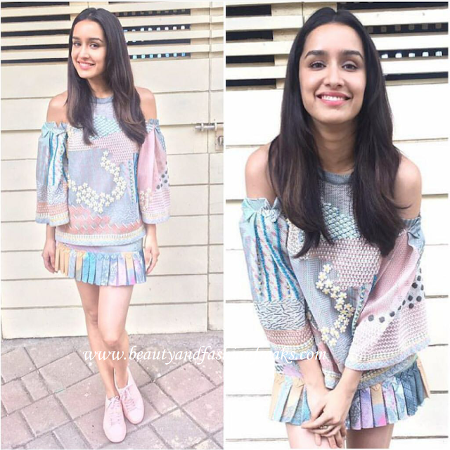 It was Pankaj and Nidhi separates for Shraddha for her recent round of Ok Jaanu promotions. With her middle parted hair down, she completed the look with a pair of pink Zara sneakers and muted make-up. Loved the separates on Ms. Kapoor and pairing them with those sneakers was just the right move. The actor looked damn cute!
