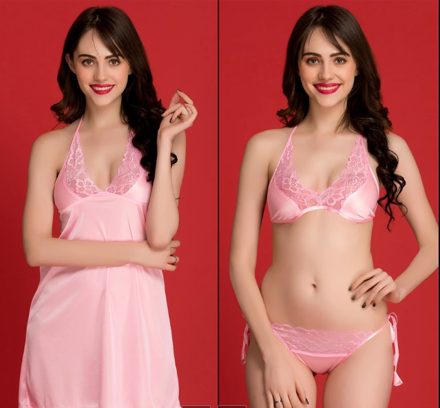 When buying your lingerie, it is always a good decision to buy it in a set so that you can wear as much as you want or as less, as you desire. The sexy combination of a bralette with a thong is what will make you enjoy the heat by amping up your own hotness quotient. You can wear the whole set together or all of the pieces separately. The satin nighty will keep you cool while making you look like the seductive goddess if you choose to wear it during your intimate moments. You can wear the smoking hot red colored halterneck bralette with off shoulder tops or dresses.