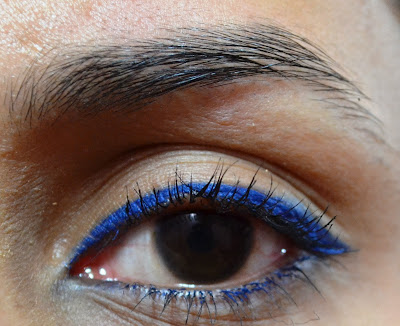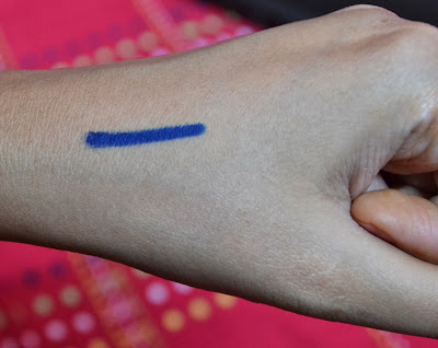 but that’s not an issue for me as I am very much satisfied with its performance. I love this shade. In fact I fell for this shade instantly. This color gives a very dramatic looks to eyes. I have come across many blue color shade eyeliners but it has always been a challenge for me to find out my shade. I guess my search for the right blue shade is over with this one. I just adore this color, I find it really very pretty. Despite being so bright it has a complete matte finish.